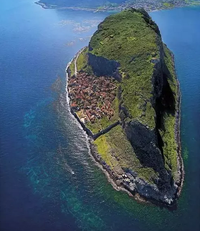 莫奈姆瓦夏(Monemvasia)是希臘拉科尼亞州的一個(gè)城市,位于伯羅奔尼撒半島東海岸的一個(gè)小半島。這個(gè)半島寬300米,長(zhǎng)1公里,與大陸通過(guò)200米長(zhǎng)的短堤相連。這座隱秘小鎮(zhèn)曾是馬爾瓦西亞酒(Malvasia)的主要裝運(yùn)港口,酒的名稱也來(lái)源于此。