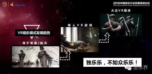 另外一個就是模式,我們主題樂園一直鼓勵人們走出去,到戶外,不要待在家里,然后VR則是頭盔戴上去,一個人享受。