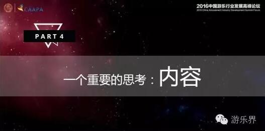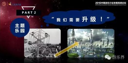 剛剛講的是為什么要,是從消費者的角度來看,那從我們從業(yè)者的角度來看呢?為什么要呢?因為主題樂園經(jīng)過十幾年二十年的發(fā)展,可能開業(yè)十幾年了。今天一位老總講他們開業(yè)十幾年,一個項目都沒有更新過,我捏了一把冷汗,十幾年沒有更新過項目,你還活著,真不容易。國內(nèi)有哪個項目開了十幾年一個項目沒有更新過呢?應(yīng)該沒有,有的話都倒了。也就是說我們項目都是需要經(jīng)常更新的,升級升級再升級。媒體或者是地方政府經(jīng)常會問你,你哪天更新新設(shè)備?所以我們經(jīng)常說自己,永遠沒有完工的一天。