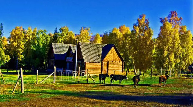 白哈巴村被稱為西北第一村和西北第一哨,位于新疆阿勒泰地區(qū)哈巴河縣鐵熱克提鄉(xiāng)境內(nèi),該村的所有建筑均由原木筑成,以外觀很古樸的小木楞屋為標(biāo)志,具有歐式村寨的特色,墻體和頂棚用整根原木壘砌、拼接而成,頂部再用木板支撐成“人”字形的尖頂,可防雨防雪,以保證住房的安全。