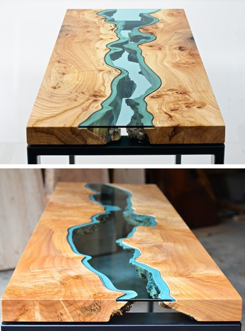 用廢木頭和玻璃做成的河流桌子,由美國(guó)西北部沿海地區(qū)的家具設(shè)計(jì)師 Greg Klassen 設(shè)計(jì)的「河流」桌子,其選用的木材來(lái)自回收的樹(shù)木,往往來(lái)自即將腐爛的樹(shù),以及來(lái)自建筑工地的樹(shù)。設(shè)計(jì)師把樹(shù)木原有的紋路想象成河流的岸邊,并且根據(jù)木材的邊緣手工切割玻璃,將玻璃覆蓋在木材之上,桌子上翠綠的玻璃看上去仿佛就是一條蜿蜒曲折的河流。美得讓人難以抗拒。