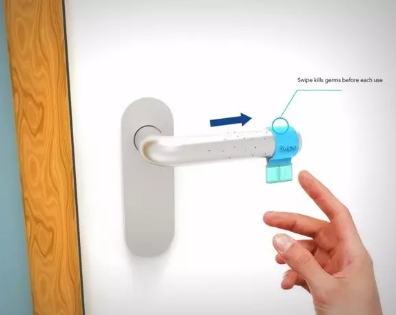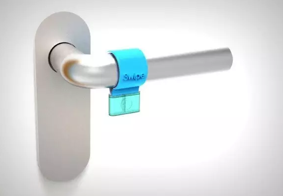 辦公室每天很多人進進出出,門把一進一出都需要用手拉一下,實際上門把手上的細菌比馬桶還要多,對于有潔癖的人士是難以接受的。Swipe是一個迷你的門把手消毒滑塊,對于那些特別愛干凈的人來說相當有用。將Swipe套在門把上,開門時拽著Swipe的一端來回一滑,整個把手就消毒干凈,你就能放心地握著門把開門,也體現出設計師相當注重生活細節(jié)。