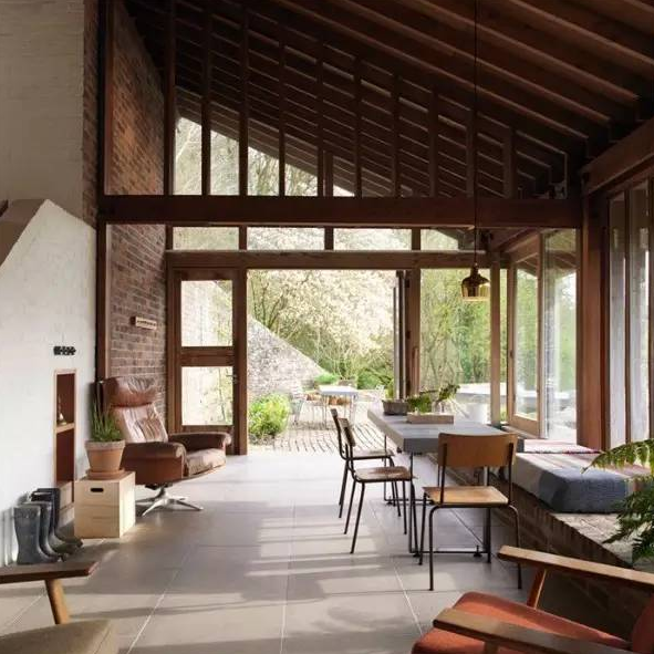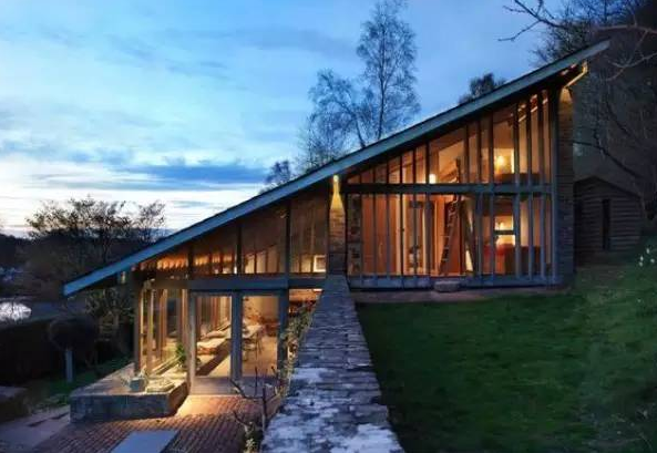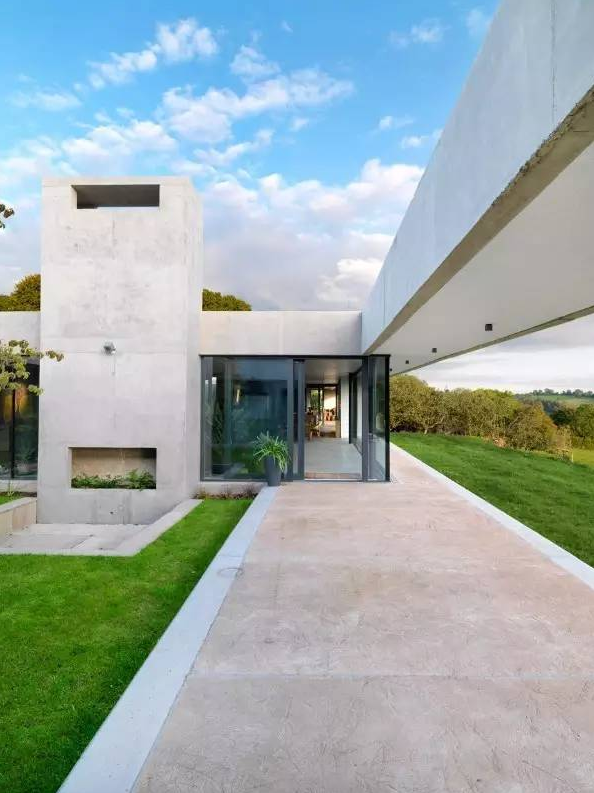 這座英國(guó)鄉(xiāng)村住宅是一對(duì)藝術(shù)家的住所和工作室,有著寬闊的草坪屋頂、玻璃圍合的庭院。住宅依偎在地形之中,從北面基本上看不見它。