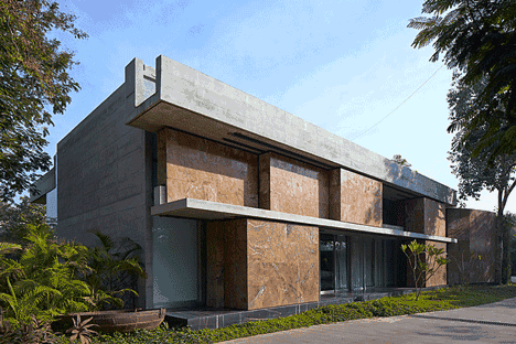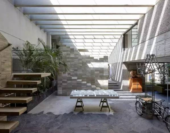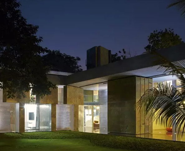 這是位于印度西北部一城市郊區(qū)的一棟住宅,一個(gè)走廊與外墻組成的空間混合體。只要你按一下室內(nèi)的按鈕,首層的4塊大理石便會(huì)相互移動(dòng)。