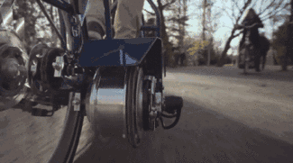 在車輪后方帶有一個250W的驅動馬達,當行走時就能帶動馬達轉動,從而使履帶循環(huán)滾動,讓自行車行駛。車速也取決于使用者步行的速度,具有6當速度可調,最高時速可達25公里/小時,續(xù)航可達55公里。