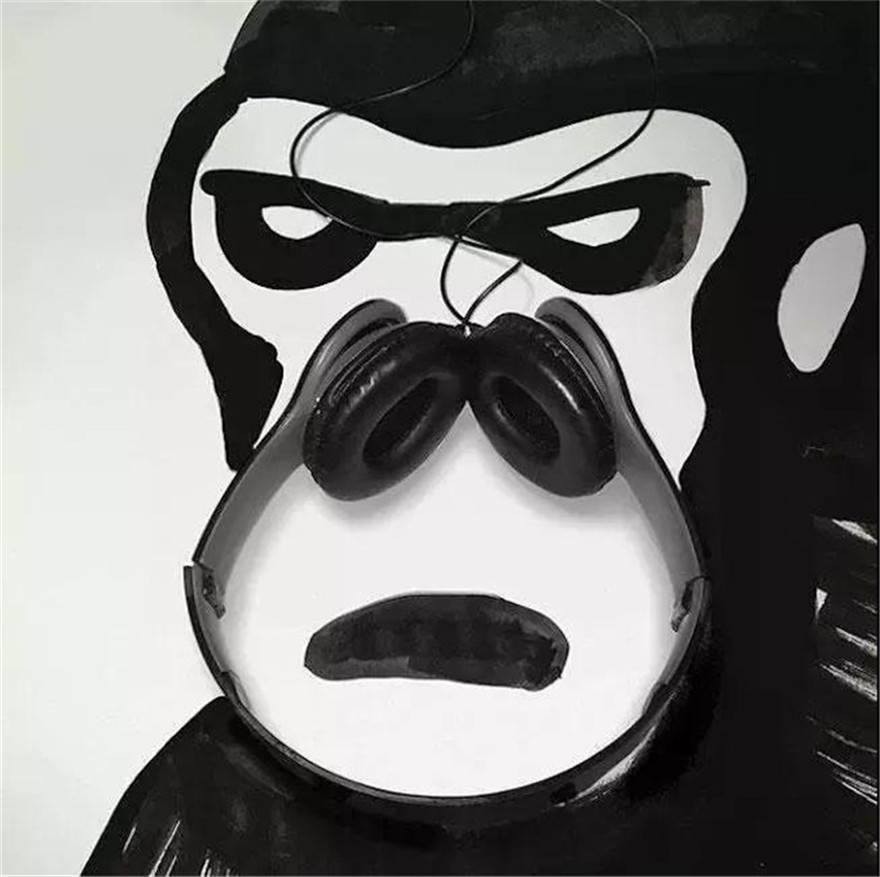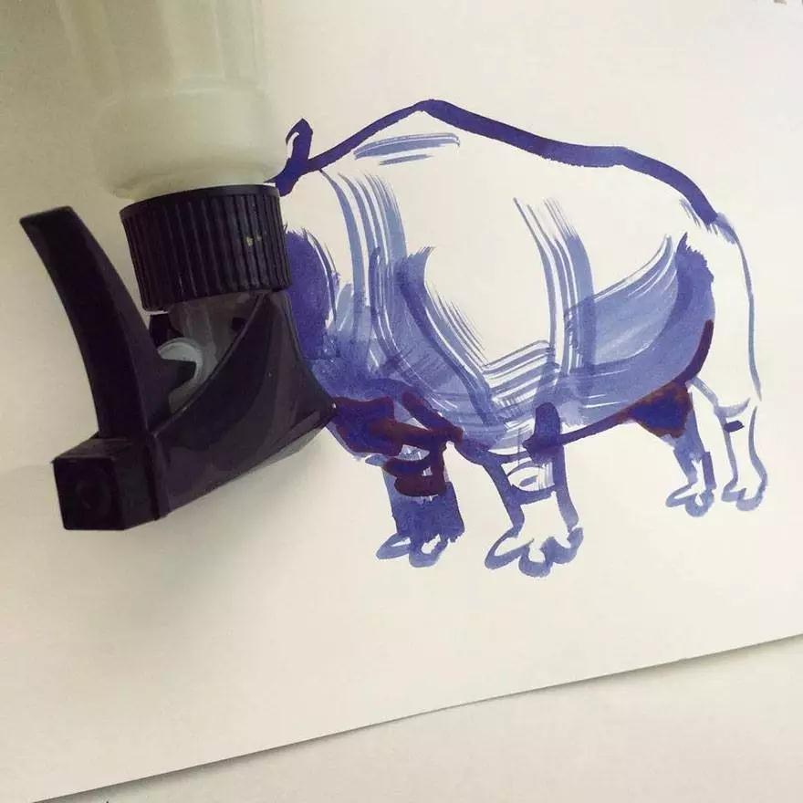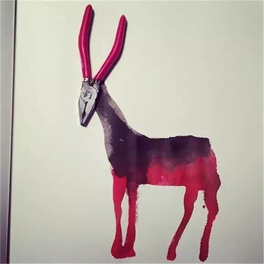 就比如說他用耳機、剪刀、墨水瓶等很普通的東西創(chuàng)作出了許多非常有意思的作品