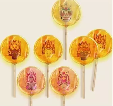 這充滿甜蜜蜜的棒棒糖,是貴州知覺文化傳播有限公司的創(chuàng)意,里面加入貴州在地文化的精粹——“儺戲”,吃一口波板糖回憶童年,想起家鄉(xiāng),別有一番風(fēng)味。