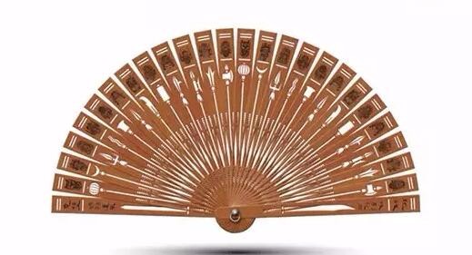 這款十八般兵器扇子來自吳謙老師的設(shè)計,用貴州獨有的楠竹作為原材料,靈蓋來自中國古代傳統(tǒng)的十八班兵器,將兵器圖案使用獨具匠心的鏤空工藝,巧妙安插到每一個扇葉中,讓每一個頁面都擁有獨特的兵器呈現(xiàn)讓人愛不釋手。