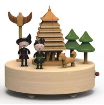這件作品來自郭超老師,是將八音盒與侗鄉(xiāng)文化以現(xiàn)代極簡的方式進(jìn)行呈現(xiàn),配合生態(tài)楓木質(zhì)感,獨居貴州特色。