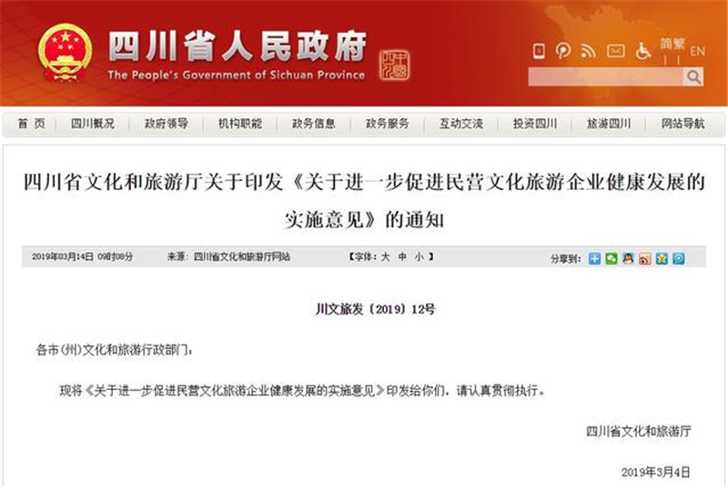 四川省文化和旅游廳近日印發(fā)的《關(guān)于進(jìn)一步促進(jìn)民營文化旅游企業(yè)健康發(fā)展的實(shí)施意見》,從10個(gè)方面支持全省民營文化旅游企業(yè)發(fā)展。這是記者從3月13日四川省文化和旅游廳召開的新聞通氣會上獲悉的。