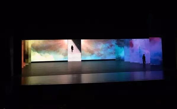 舞臺(tái)兩側(cè)LED屏與主背景屏舞美視頻聯(lián)動(dòng),形成整體視覺(jué)感
