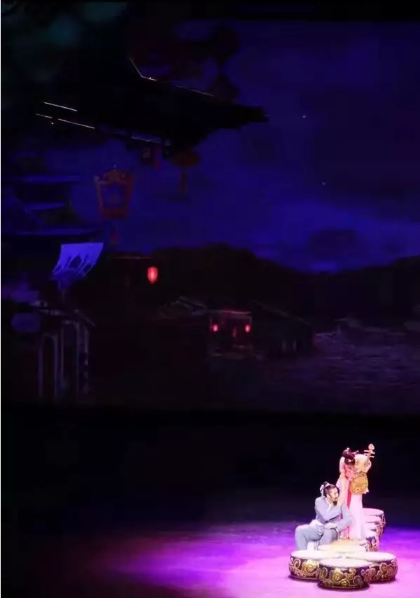 臺(tái)階與地面作地屏聯(lián)動(dòng)投影,形象呈現(xiàn)故事背景